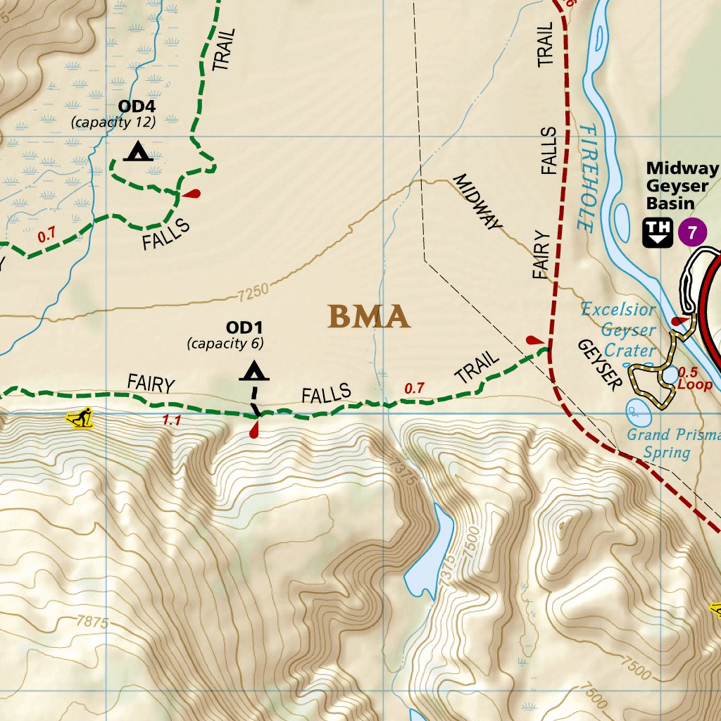 Trails Map Of Old Faithful Day Hikes Yellowstone National Park 319 Mapscompany Travel Maps And Hiking Maps